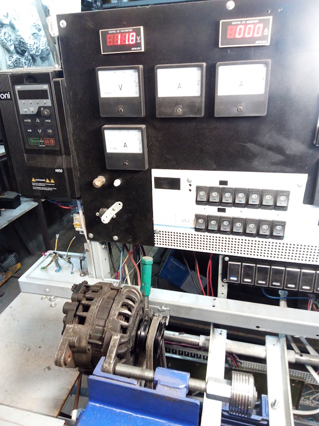 19. Устанавливаем генератор на стенд, подключаем и запускаем. Постепенно увеличиваем нагрузку.