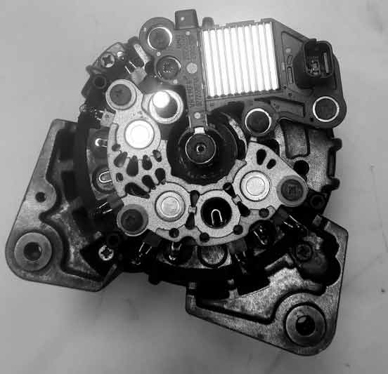 17. В заднюю часть генератора вставляется обмотка и припаивается новый диодный мост.