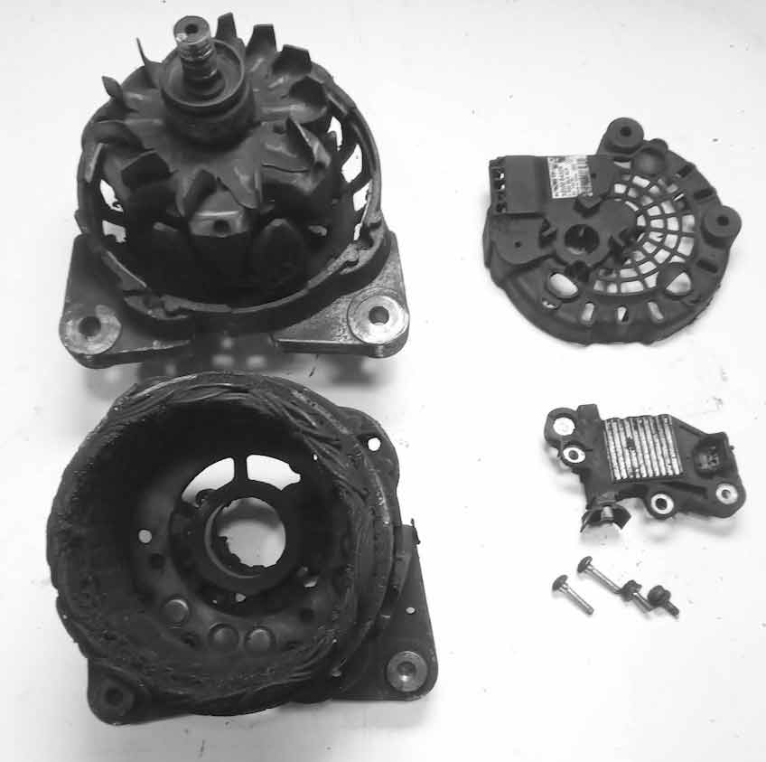 3. Разобрали генератор на две части и сняли регулятор напряжения.