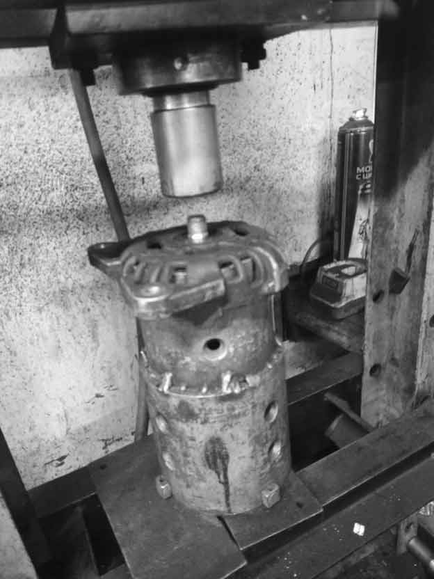 4. Сняли шкив и выдавливаем на прессе ротор генератора.